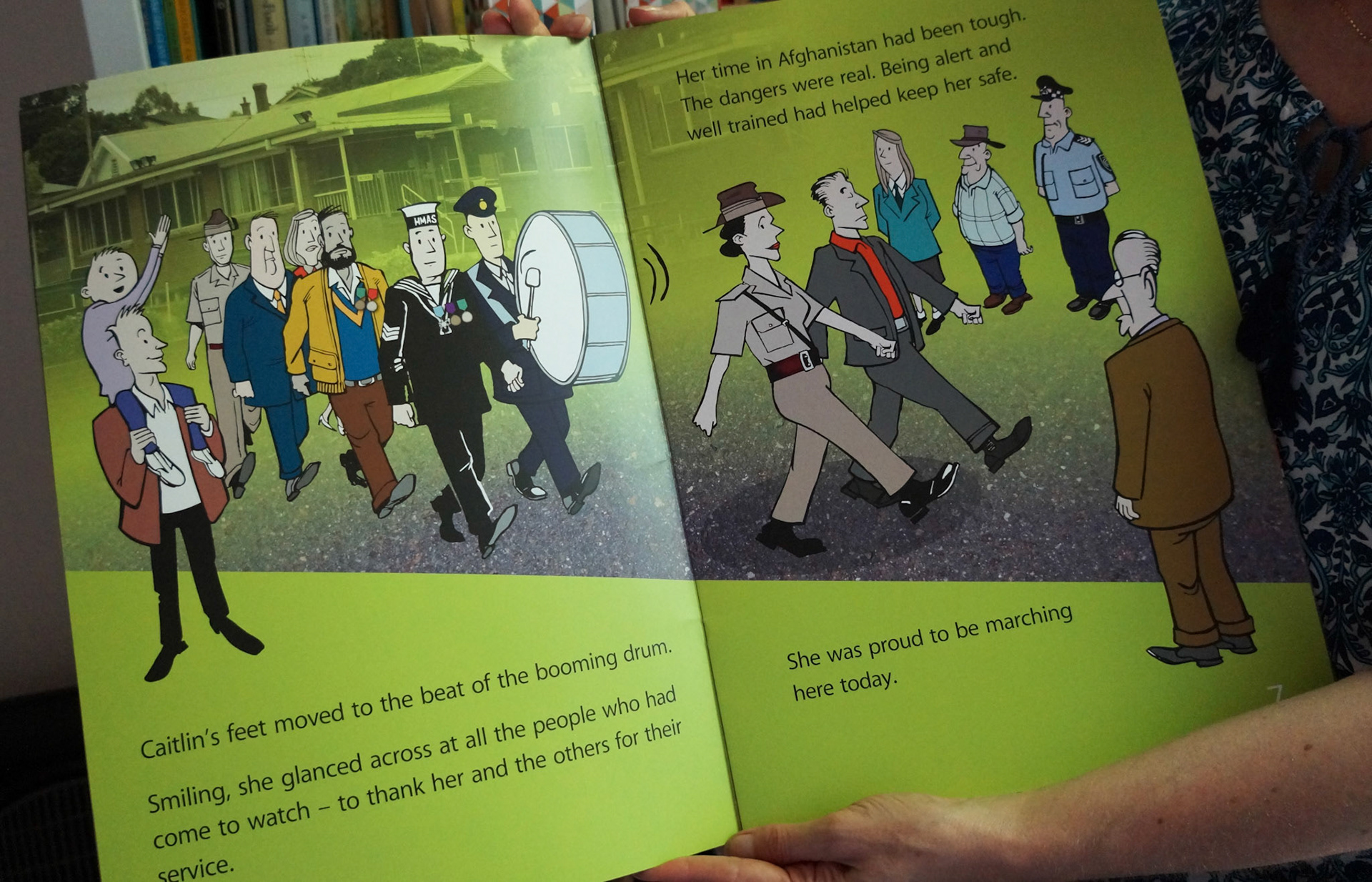 Collaborating with well-known Australian cartoonist Warren Brown this large format education publication was designed for lower primary students. The illustrations comprise Warrens’ fictional cartoon characters juxtaposed with photographic locations and situations. The story explores a variety of characters and their perspectives on Anzac Day.